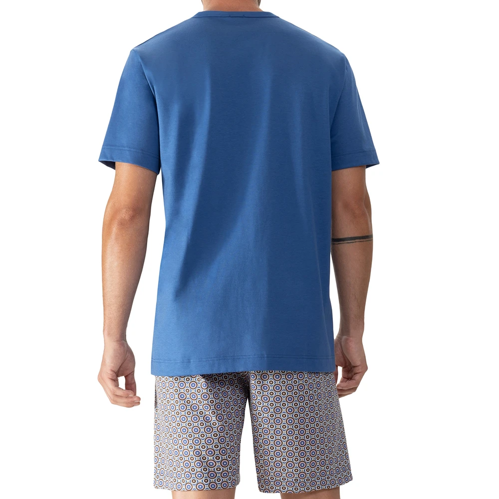 Darf in Ihrem Kleiderschrank nicht fehlen – der zweiteilige Schlafanzug aus der Serie Disc in der Farbe Classic Blue. Durch 100 % Baumwolle ist dieses Produkt besonders atmungsaktiv und hautfreundlich. Das unifarbene Shirt ist mit einer Brusttasche besetzt. Der Minimal-Print auf der kurzen Hose rundet das Design des zweiteiligen Schlafanzugs ab.
