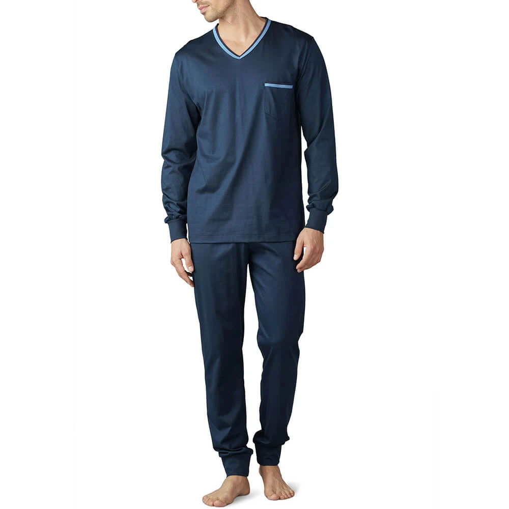 Komfortabler langer Schlafanzug mit Bündchen in zeitlos, elgantem Look.