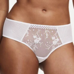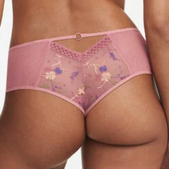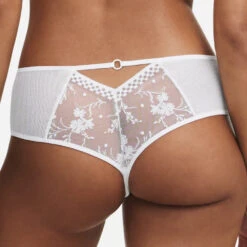 Shorty mit Stickerei und Tüll Einsätzen an den Seiten, im Rücken mit Cut-out geschmückt mit einem Elastikband und Ring.
