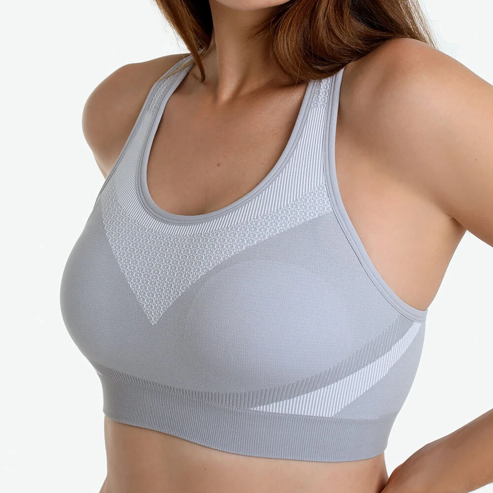 Sport-BH aus nachhaltigem Rundstrick-Material. Ohne störende Nähte. Herausnehmbare Pads,komfortabler Sitz durch Ringerrücken, vorgeformte Cups. Moderne Optik und perfekte Passform.