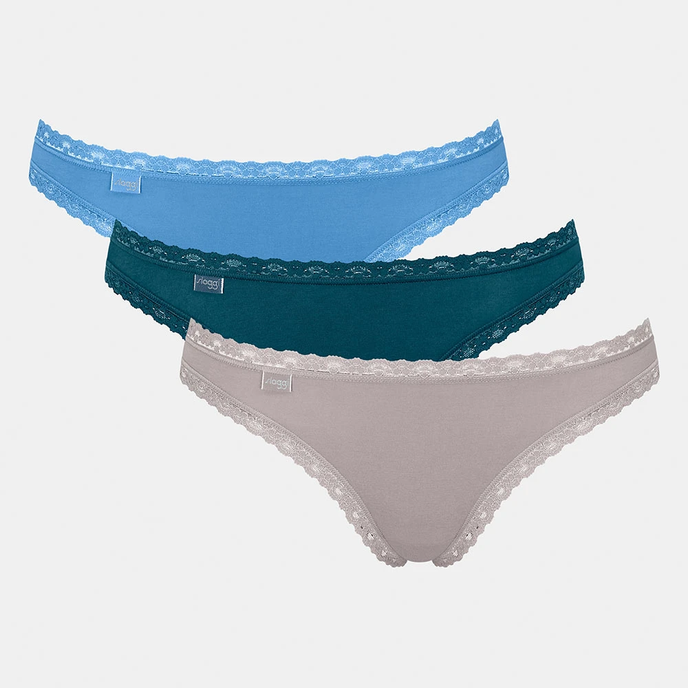 Der Brazil Slip hat eine schmale Seitenpartie und einen zarten, flach abgerundeten Spitzensaum an Bund und Beinausschnitt. Der Slip ist aus weichem, hautfreundlichem Jersey mit hohem Baumwollanteil.