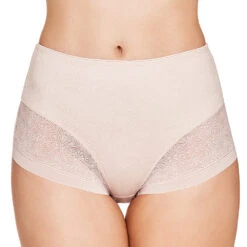 Der Slip aus der Serie Milano mit mittlerem Shaping Effekt zaubert einen flachen Bauch für einen eleganten Look durch die Power Lace Spitze.