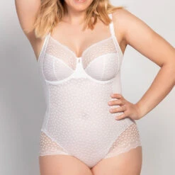 Leichter Taillienslip aus weicher seidig glänzender Microfaser mit Einsätzen aus Spitze in Pünktchenoktik in Vorder- und Rückteil. Poumschließender Schnitt. Bund- und Beinabschlüsse sind mit einem flachem Paspelbändchen eingefasst.